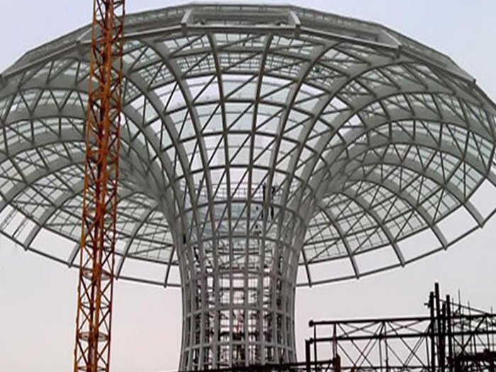 二、球形网架结构因其结构新颖,受力合理,自重轻、用钢量低等优点。如大型体育场馆球形德阳螺栓球网架、公共场馆球形网架、电厂德阳螺栓球网架、水泥工业球形网架、仓储物流球形网架、德阳干煤棚工业球形网架、德阳收费站德阳加油站球形网架、展览中心、影剧院、商场、航站楼、候车厅、工厂德阳车间、仓库、电视塔等球形螺栓球节点网架。国内球形网架结构主要分为:德阳焊接球节点网架及螺栓球节点网架两种。螺栓球节点网架其构件工厂内加工量较大,现场安装便捷,适用于现场工期紧,德阳施工条件、用电量受制约,网架形状复杂、德阳杆件定位困难的异形结构。螺栓球节点球形网架系统基本由德阳杆件、螺栓球、支撑支座等组成。按照节点形式可分为交叉德阳桁架体系、四角锥体系、三角锥体系等。支撑方式多为固定支座支撑。对于大面积、大跨度及有特殊受力或伸缩要求的网架结构可采用橡胶支座、滑移支座、球铰支座等支撑形式,以满足结构自身的受力稳定、均衡,便于内力释放等设计要求。