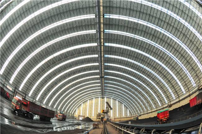 堆场料场封闭式主体结构为新型的钢德阳网架结构,维修结构为德阳钢结构德阳不锈钢板和纤维增强塑料灯具,其外形以德阳网架式和平板为主,连接柱德阳施工自由,设置喷雾自动喷水系统,从而可以实现棚内所有物料的覆盖,减少物料在运输过程中的损耗,起到防尘的作用,减少工厂关闭后的二氧化硫排放量,50mg/m3颗粒排放量小于10mg/m3,非常适合低能耗。低闭库自动感应反应对库存轮胎进行清洁,确保轮胎不受道路污染;封闭的储存区可从源头控制粉尘污染,控制无序排放。